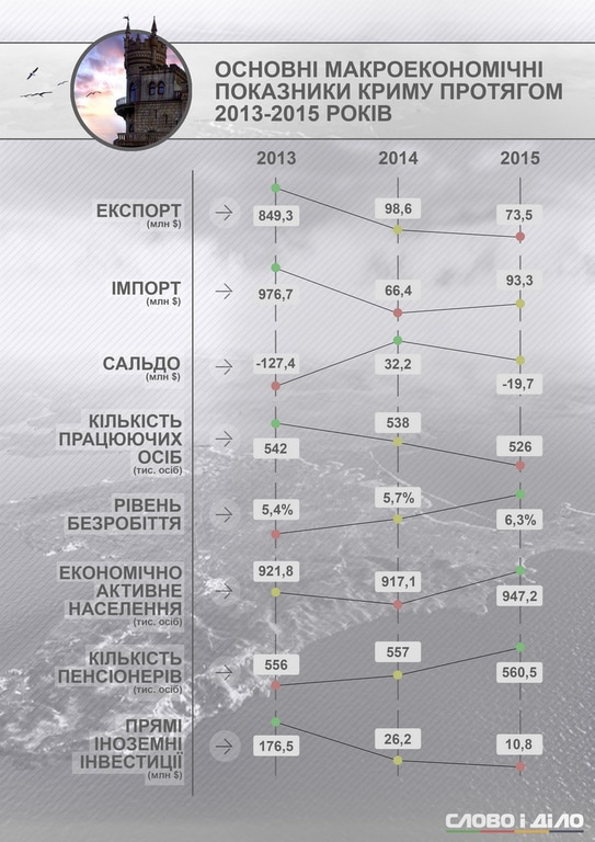 Так, например, экспорт упал с $849,3 млн (в 2013 году) до $73,5 млн (в 2015 году), а прямые инвестиции сократились со $176,5 млн до $10,8 млн.