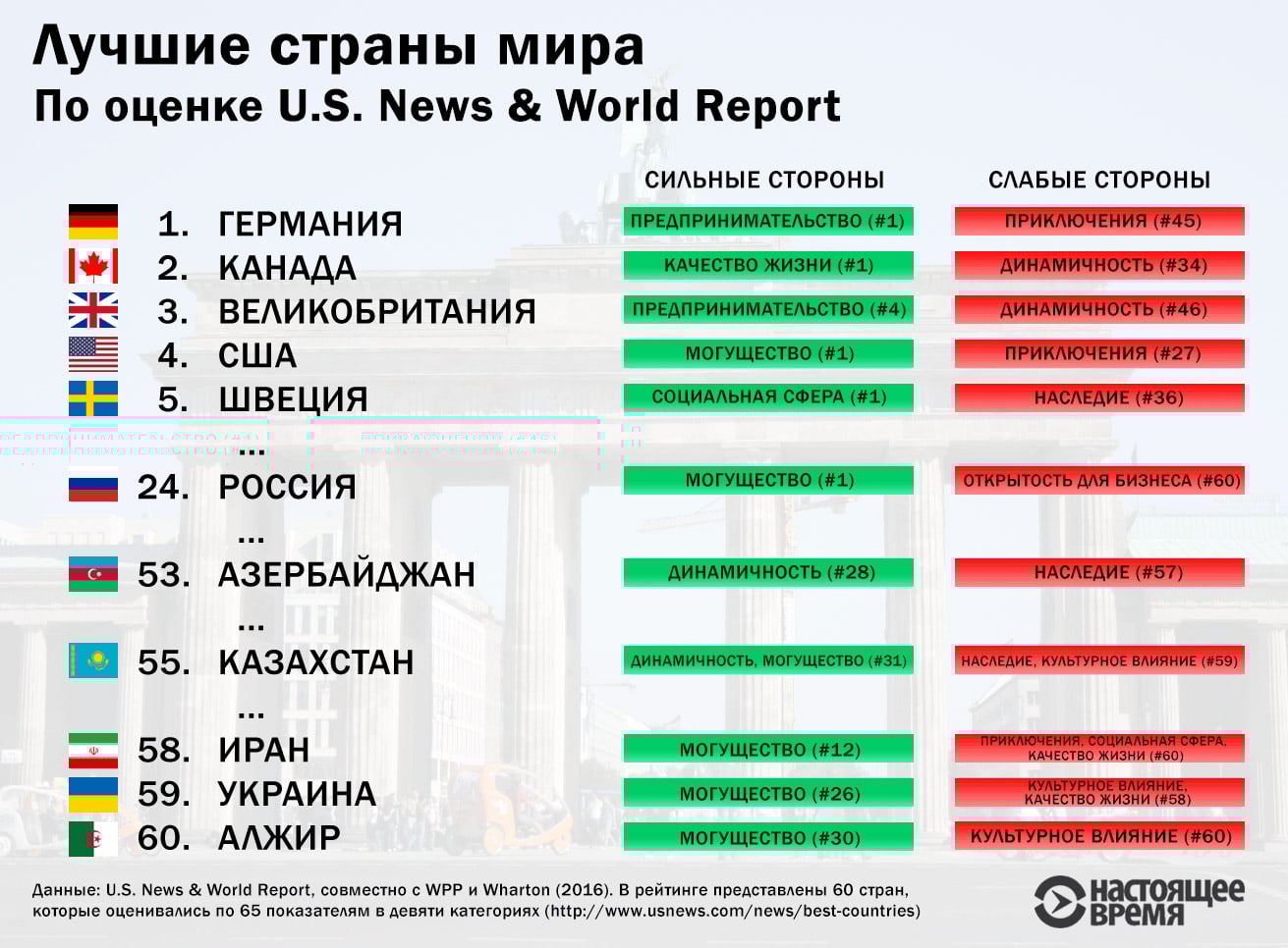 U.S. News&World Report составил рейтинг "Лучших стран мира": 60 государств с 90% мирового ВВП