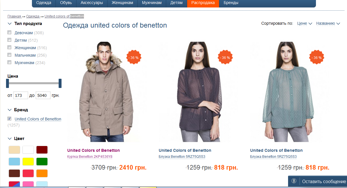 Но и это еще не все. Поклонники конкретных брендов могут выбрать исключительно вещи почитаемой ими торговлй марки. К примеру, вы страстная поклонница "Бенеттона". Один клик - и вуаля: вещи United Colors of Benetton на barbarys.com к вашим услугам. Да еще и со скидками.