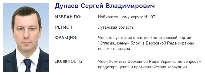Народный депутат Сергей Дунаев (фракция "Оппозиционный блок"), который ранее был мэром Лисичанска, обеспечивал прикрытие боевикам, захватившим Луганскую СБУ, а также препятствовал штурму здания украинскими силовиками.