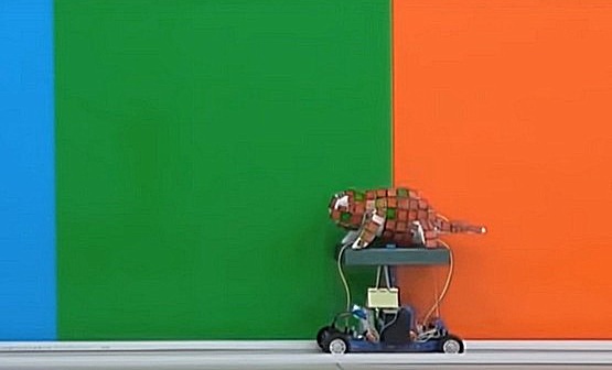Искусственное изменение имеющегося здесь электрического поля заставляет ионы серебра притягиваться к частицам золота, что в результате приводит к смене цвета. Робот наделен специальным сенсором, который следит за тем, в каком окружении находится машина, и изменяет соответствующим образом мощность электрического поля, в результате чего поверхность меняет свой цвет и позволяет сливаться с окружением.