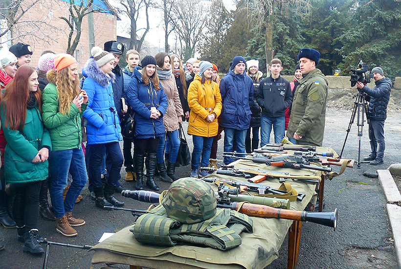 При поддержке руководства Национальной гвардии школьники посетили воинскую часть 3057 в Мариуполе. Ученики познакомились с бытом бойцов, которые вместе с полицейскими несут службу по обеспечению общественной безопасности в городе и защищают боевые рубежи в окрестностях Мариуполя