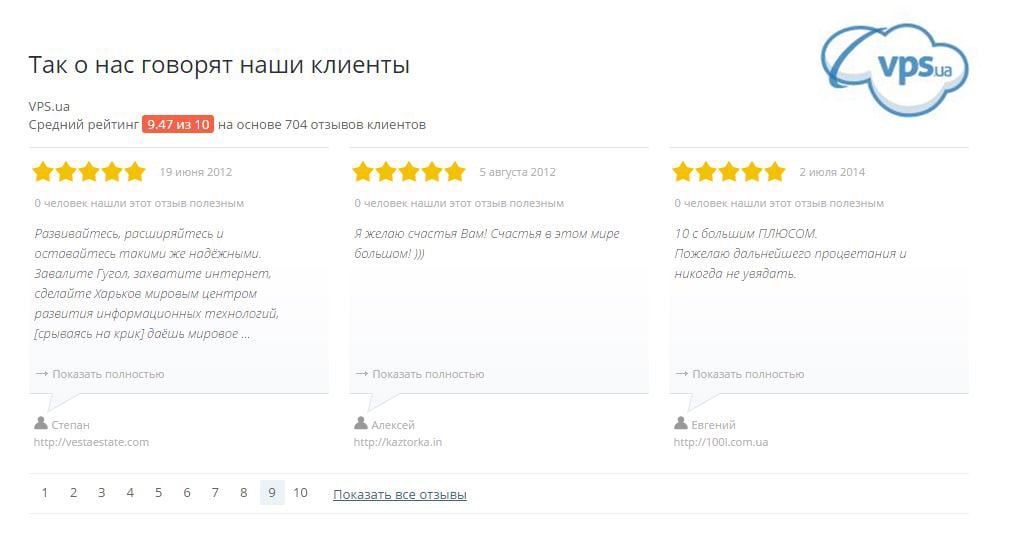 Положительные отзывы о VPS.ua
