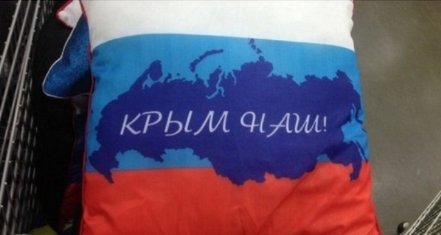 В оккупированной Россией Феодосии в одном из киосков с сувенирной продукцией предлагают купить подушки с картой России и надписью "КрымНаш".