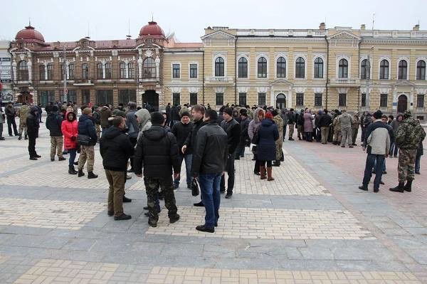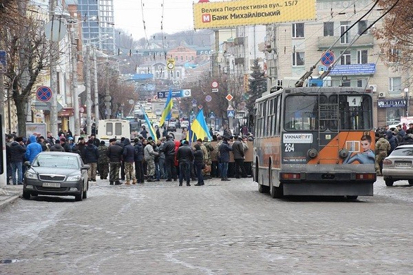 Во вторник, 9 февраля, в Кировограде участники АТО перекрыли движение в центральной части города, протестуя против коррупции в Госгеокадастре.
