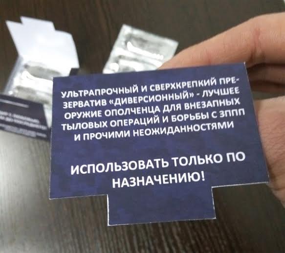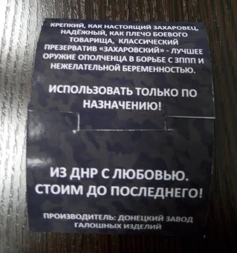 В ДНР выпустили презервативы - Захаровские, Стрелковские, Диверсионные. Об этом сообщает Главное со ссылкой на пользователей соцсетей, которые и опубликовали фотографии террористической новинки.