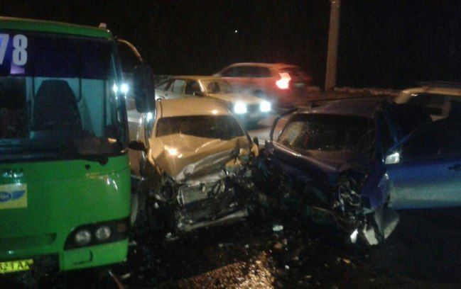 Столкнулись два легковых автомобиля - «Chevrolet AVEO» и «Chevrolet Lacetti», а также маршрутный автобус № 278.