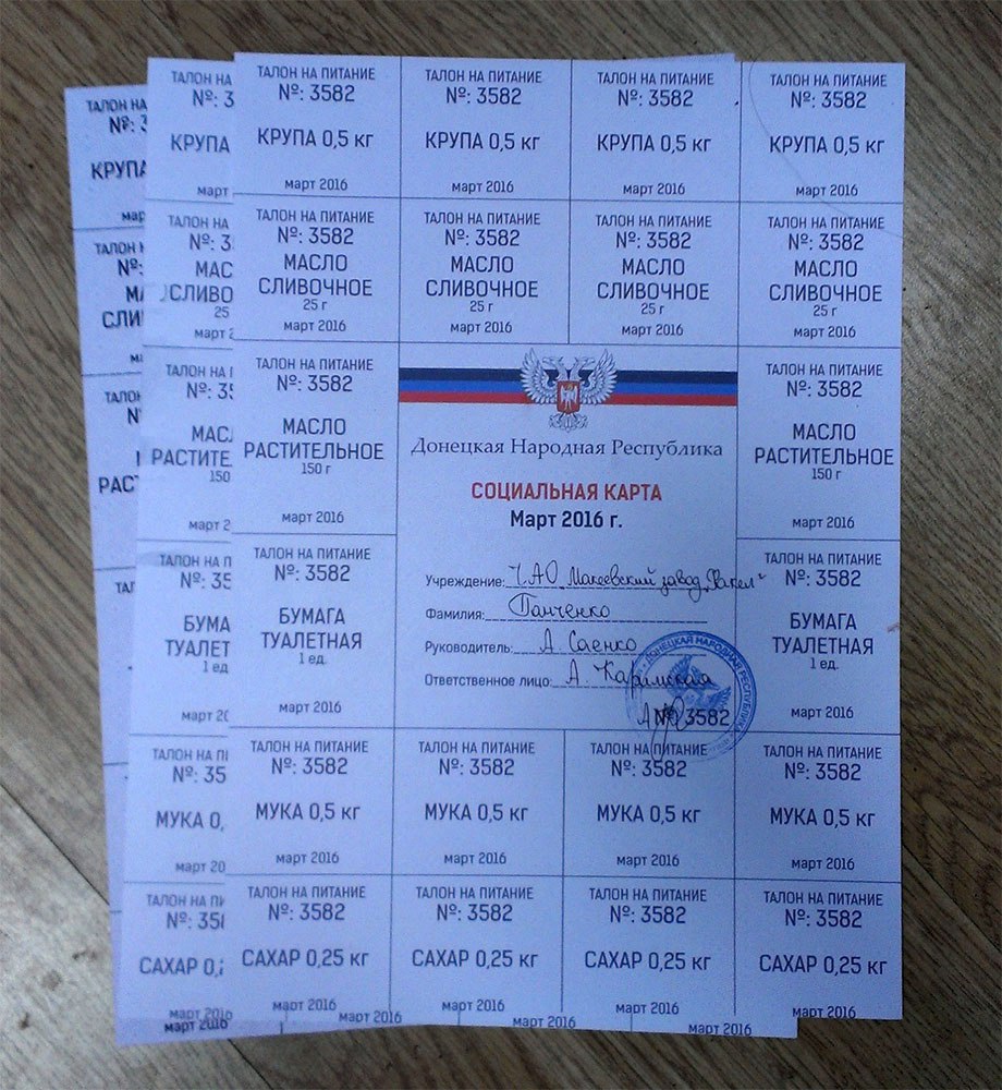 В Макеевке Донецкой области оккупационная "власть" начала раздавать талоны на питание и туалетную бумагу вместо заработной платы. Об этом написала жительница оккупированных территорий Надежда Панченко на своей странице в ВКонтакте.