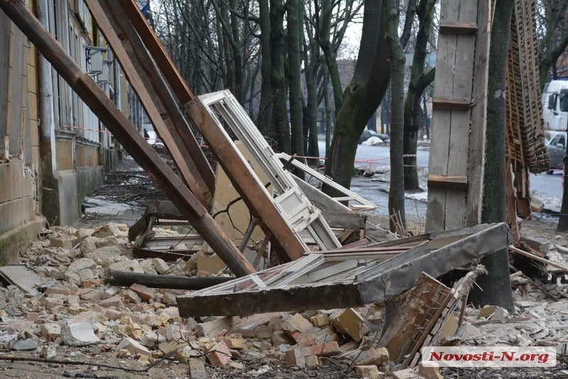 Днем в четверг, 11 февраля, около 15.00, в центре Николаева обрушилось здание, расположенное по адресу Большая Морская, 45. По словам очевидцев, сначала рухнула передняя фасадная стена. Вслед за этим обрушилась и кровля. Обломки здания упали прямо на асфальт, на котором по счастливой случайности в этот момент не было прохожих, пишет Главное со ссылкой на novosti-n.
