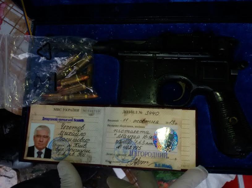 Кроме того, в помещении дома изъято разрешение, выданное на право хранения и ношения наградного пистолета «Маузер К-96» на имя Чечетова М. В., сам пистолет и 10 патронов к нему.
