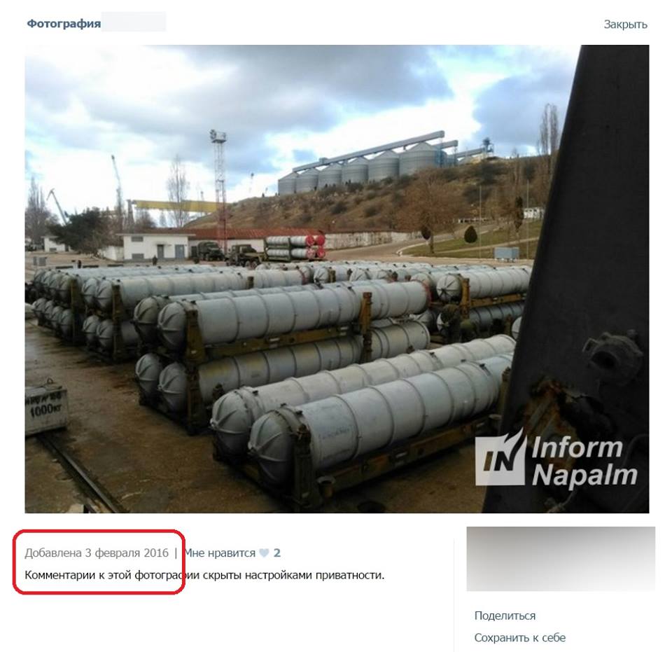 По данным СМИ, в морском порту Севастополя обнаружены около 40 единиц транспортно-пусковых контейнеров к зенитно-ракетным системам С-300. Фотография датирована 3 февраля 2016 г.