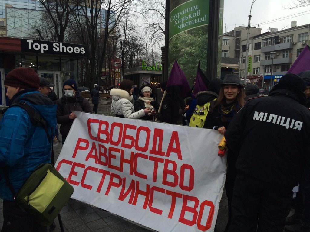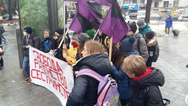 В День Святого Валентина активистки анархо-феминистского движения пытались провести в Харькове марш против дискриминации по гендерному признаку.