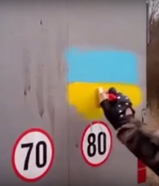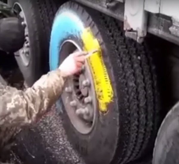 Активистам явно не понравились "георгиевские" ленты на грузовиках, и они решили это исправить.