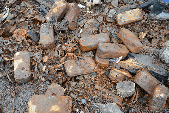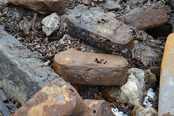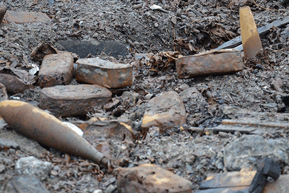 Сошел снег, и стала очевидной страшная картина. На территории складов под обломками неразорвавшиеся снаряды, мины и другие боеприпасы. Все это угрожает жизни и здоровью местному населению.