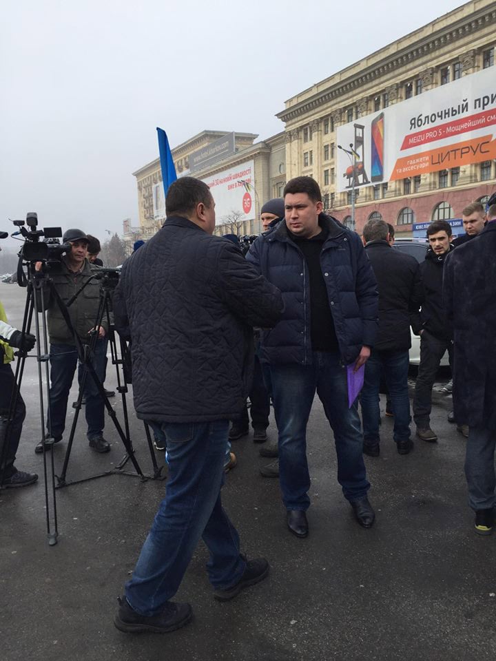 К активистам вышли советник председателя ХОГА Сергей Стороженко и заместитель председателя ХОГА Михаил Черняк, которые предложили лично отнести заявление губернатору, однако активисты продолжали требовать встречи с Райниным.