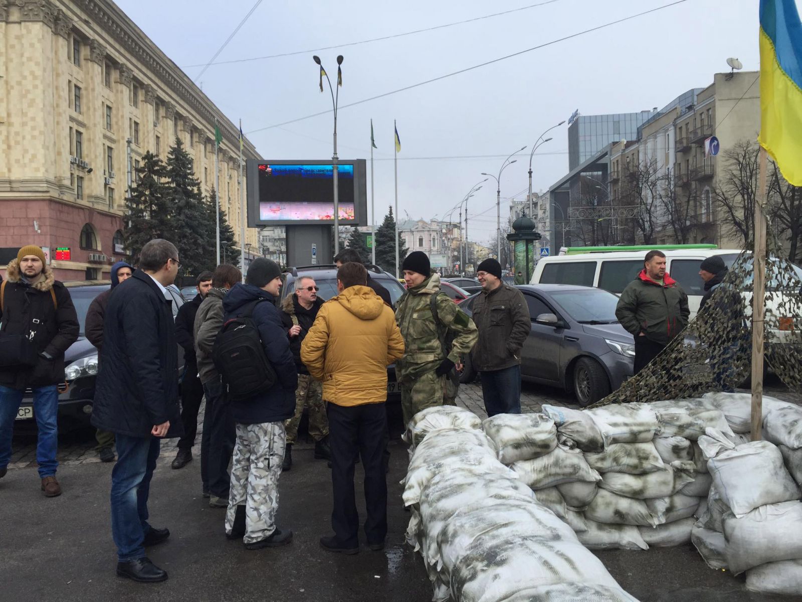 Представители нескольких харьковских общественных организаций: "Громадська варта", "Громадська самооборона", "Сотня Лева", "Свобода" и "Харьковская Хунта" пришли в облгосадминистрацию с целью увидеть губернатора Игоря Райнина и лично вручить ему заявление, в котором они просят решить вопрос с российскими фурами на границе Украины.