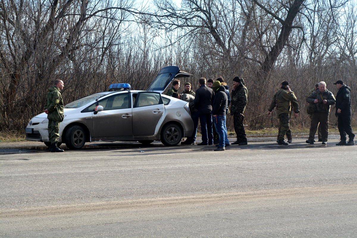 Сегодня около 8-ми утра, на въезде в город Славянск со стороны Краматорска произошёл конфликт между инспекторами полиции и людьми в военной форме.