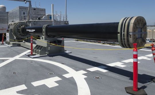 ВМС продолжают тестирование электромагнитного рельсотрона и смогут установить новую, полностью функциональную пушку на один из новых эсминцев класса «Zumwalt», строящихся на верфи в городе Бате, штат Мэн (Bath Iron Works, BIW).