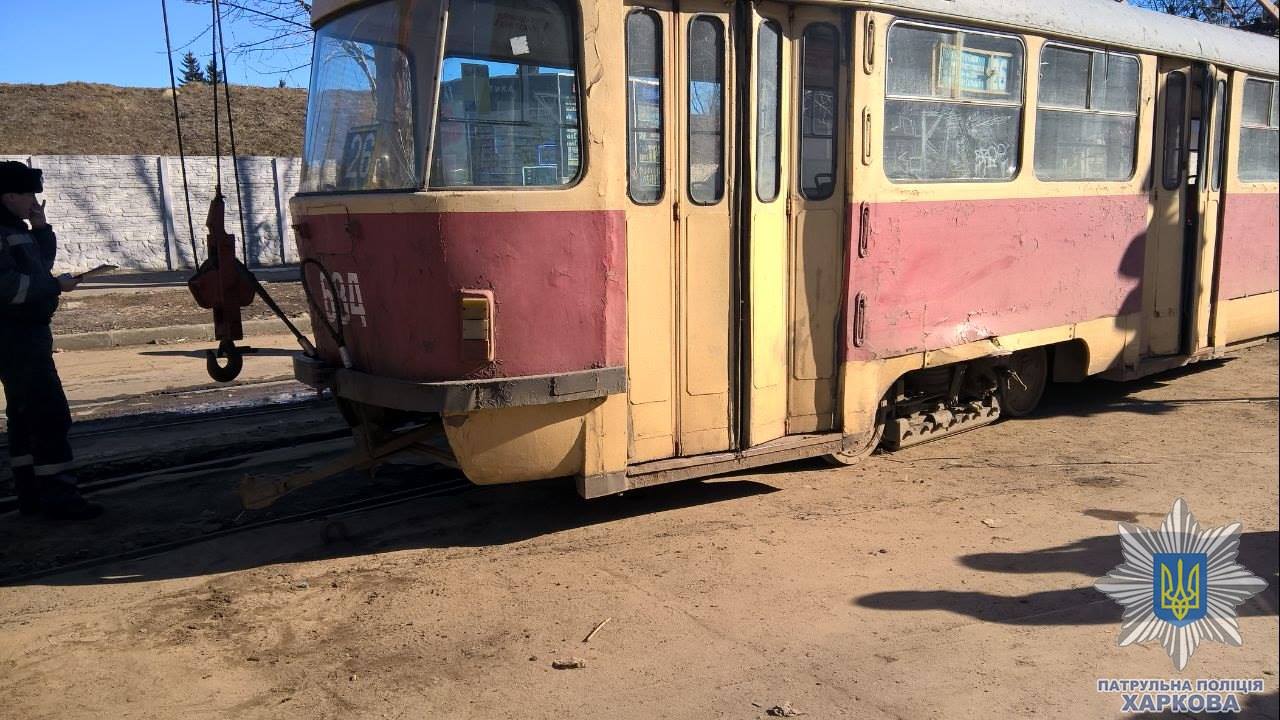 Сегодня около 9 утра на перекрестке улиц Мироносицкая и Веснина в Харькове в результате заноса сошел с рельсов трамвай 26 маршрута.