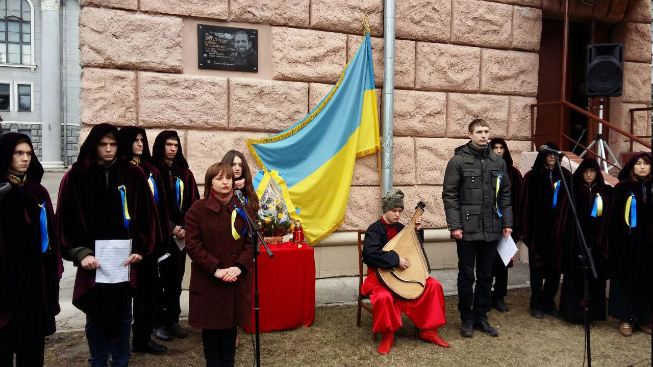 Мемориальную доску Герою Украины, Герою Небесной сотни Евгению Котляру открыли сегодня, 19 февраля, на здании главного корпуса Харьковского национального университета радиоэлектроники.