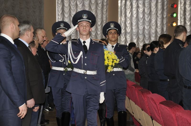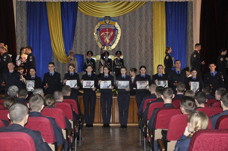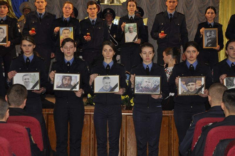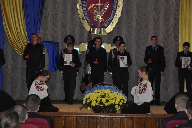 К собравшимся обратился ректор университета, полковник полиции Валерий Сокуренко, который отметил: «Два года отделяют нас от тех трагических событий. Каждый день наш народ доказывает себе и всему миру, что он по-настоящему достоен славы и свободы. Этот путь освящен памятью о Героях Небесной Сотни, уважением к бойцам антитеррористической операции, которые сегодня принимают огонь на себя, защищая восточные рубежи нашего государства».
