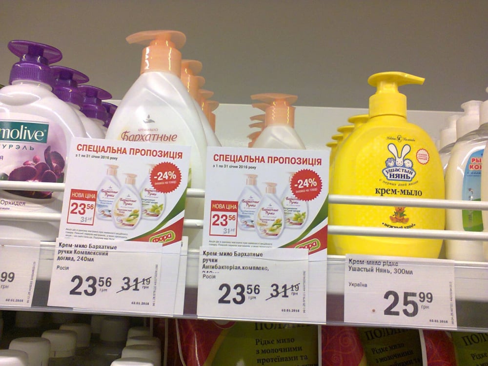 В столичных магазинах снижают цены на российские товары. Об этом Gazeta.ua рассказала киевлянка Юлия Толстянкова, которая бойкотирует российские продукты и косметику, пишет Главное.