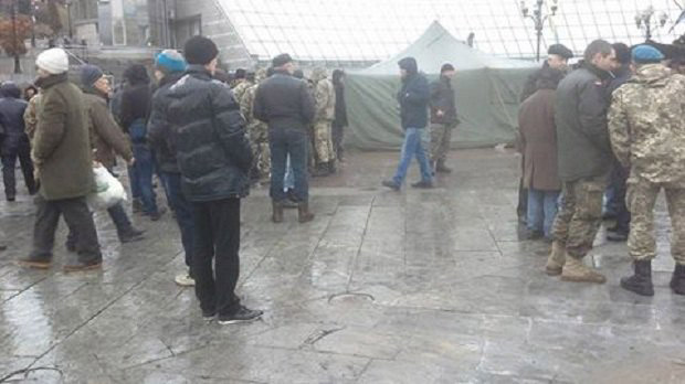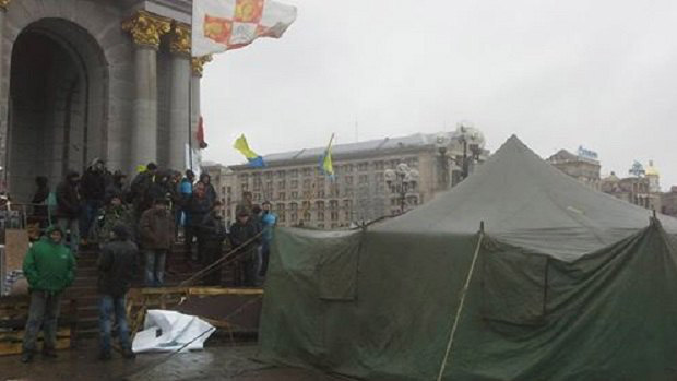 В настоящее время на Майдане осталась лишь одна большая военная палатка, которая стоит непосредственно у Стелы Независимости.