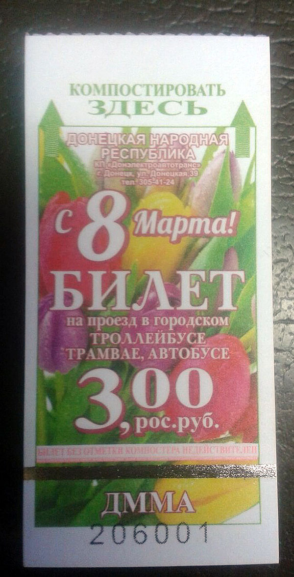 К международному женскому дню в «ДНР» выпустили праздничные билеты для проезда в городском трамвае, троллейбусе и автобусе.