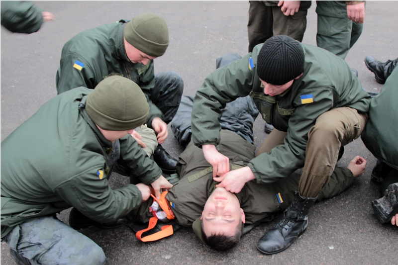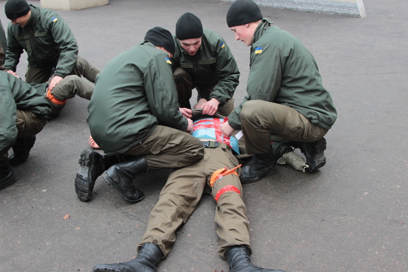 Среди вопросов, которые отрабатывают курсанты – тактическая полевая помощь, первичный и вторичный осмотр, контроль дыхательных путей, иммобилизация переломов, использование жгута, наложение шин и повязок, эвакуация раненых с помощью носилок, турникета, использование декомпрессионной иглы.
