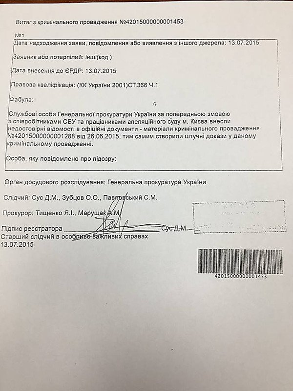 В продолжение вчерашнего поста, хочу сегодня в подтверждение своих слов предоставить выписки по всем (по крайней мере известным нам) уголовным делам, которые были инициированы разными подразделениями прокуратуры против нас, начиная с лета прошлого года. Нисколько не сомневаюсь, что, если бы эти же подразделения с таким же усердием занимались расследованием существующих коррупционных схем и потоков, а также «армией» обворовывающих страну коррупционеров, результаты на этой стезе были бы гораздо более впечатляющими и народ почувствовал бы существенную разницу, а уровень доверия к правоохранительной системе не был бы настолько, до неприличия, мизерным. Но вместо этого целая машина была задействована (главное следственное управление, служба внутренней безопасности, военная прокуратура, отдельные бывшие и действующие сотрудники и должностные лица спецслцжб) именно против нас – тех, кто имел смелость выступить против существующего годами порядка вещей, который бесспорно устраивает представителей старой системы, но не устраивает украинский народ.