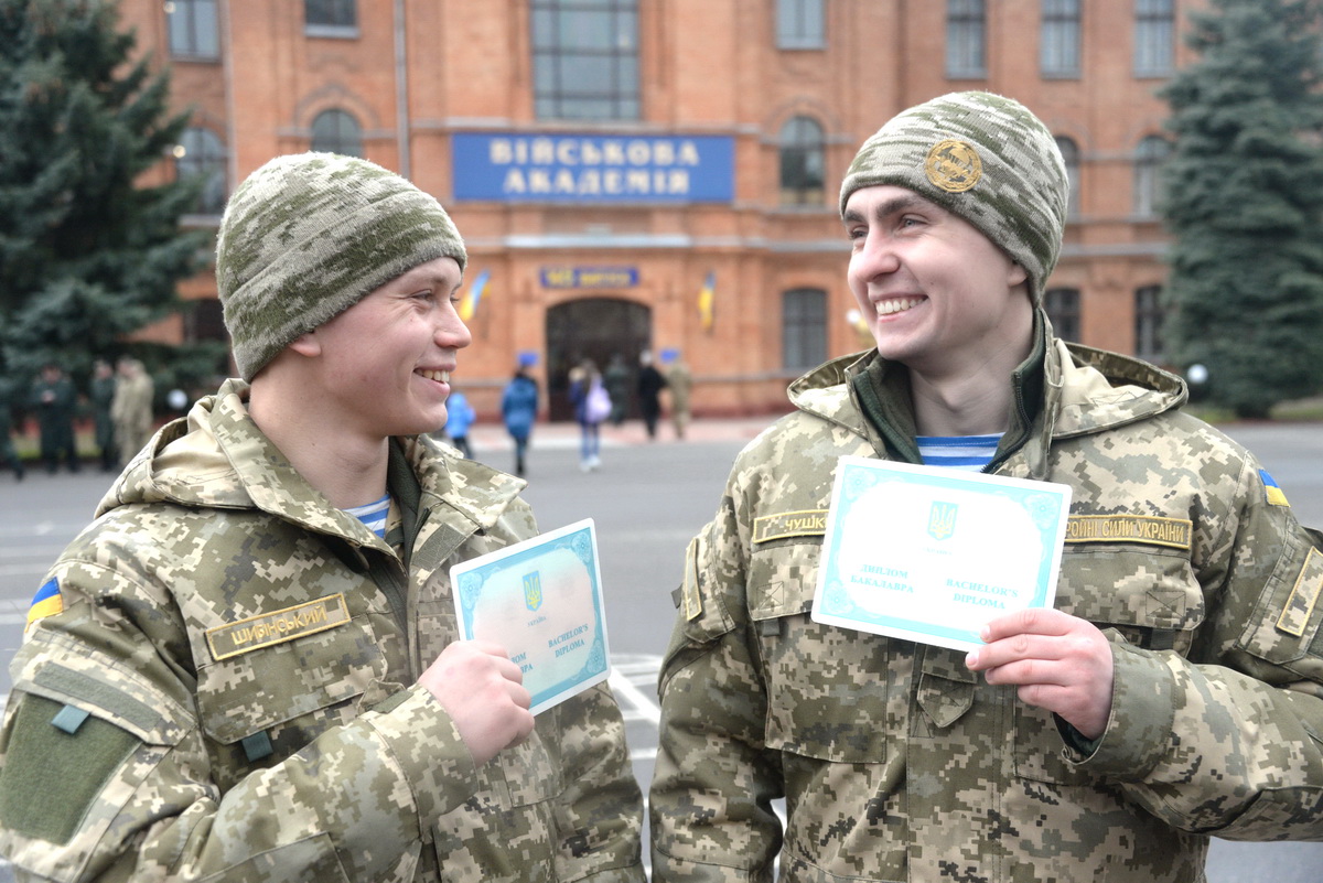 "Попрощались с родной «альма-матер» специалисты боевого применения и управления действиями механизированных и танковых подразделений, специалисты наземной артиллерии и артиллерийской разведки, а также офицеры, которые получили военную образовательную профессию специалистов воспитательной и социально-психологической работы в подразделениях Сухопутных войск. Кроме того, образовательные сертификаты получили офицеры инженерных войск и инженеры-механики, культурологи и военные дирижеры", - отмечается в сообщении.