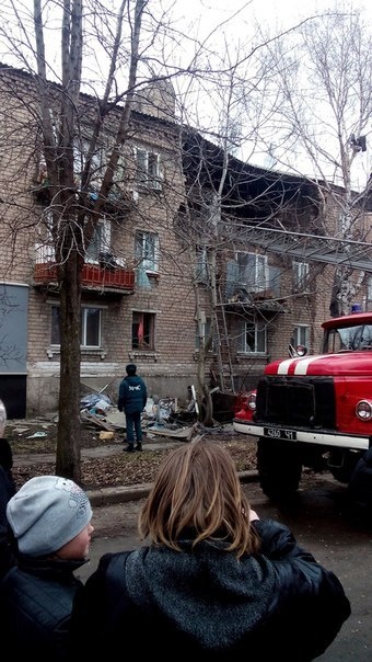 Взрыв произошел в трехэтажном доме в микрорайоне Восточный города Макеевки. Житель квартиры, в которой взорвался газовый баллон, получил тяжелые травмы и скончался в машине скорой помощи. Трехэтажный жилой дом получил повреждения, что видно на фото.