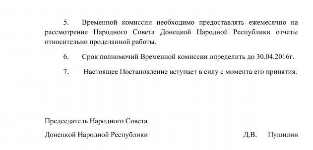 Другими словами, «постановление народного совета днр» о создании временной комиссии выглядит, как рекомендательное письмо Ходаковскому с предложением убраться из «днр» до 30 апреля с.г.