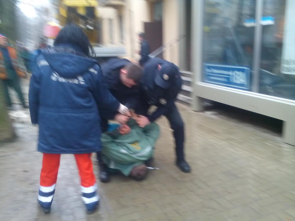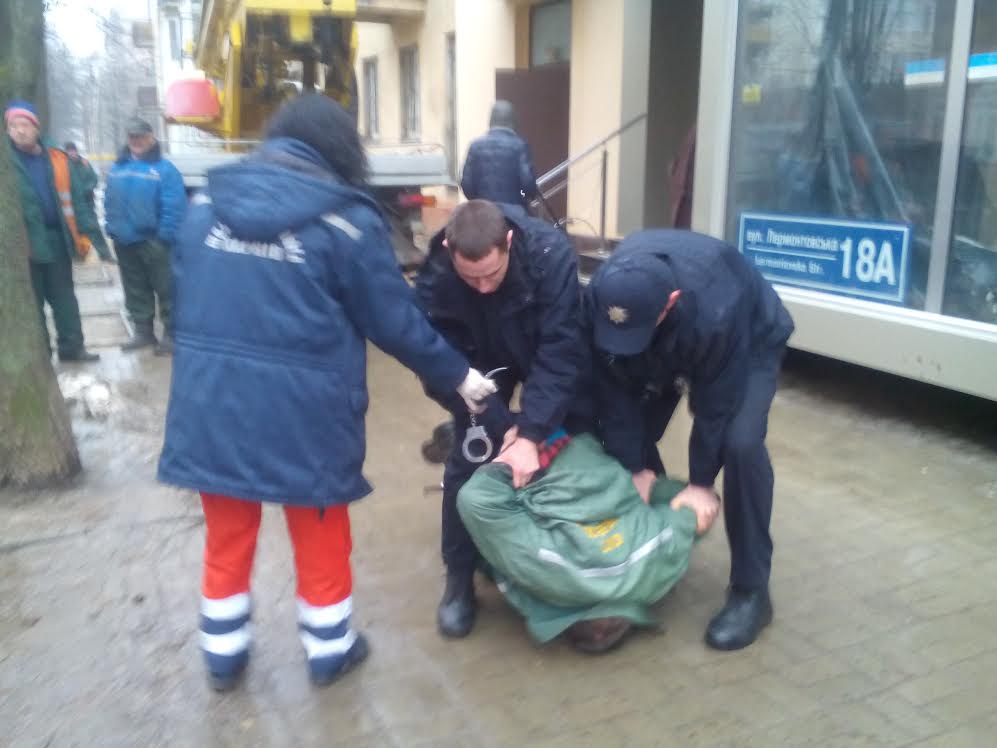 Сегодня утром в самом центре Харькова - на ул. Лермонтовской - неадекватный работник "Зеленстроя" стал бросаться на прохожих.