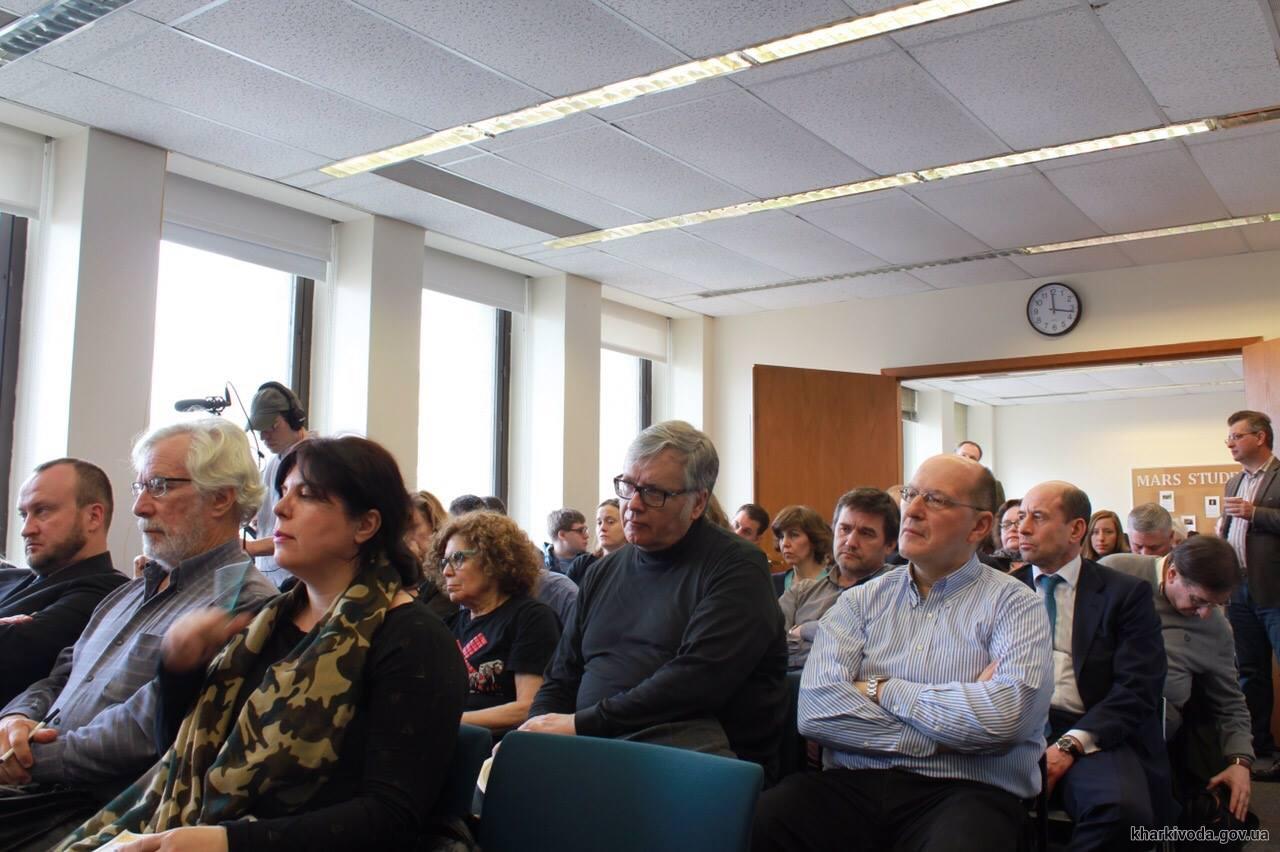 В рамках визита делегации Харьковской области в США председатель ХОГА в Нью-Йорке выступил перед студентами, преподавателями и экспертами, специализирующимися на изучении проблем развития молодых восточноевропейских демократий и новых вызовов, обострившихся в связи с конфликтом на Донбассе.