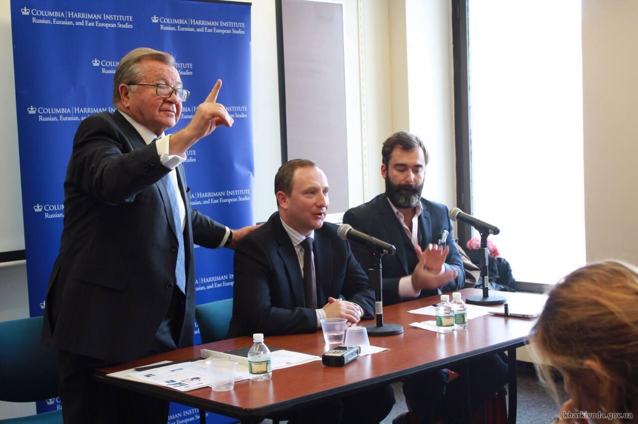 По приглашению Колумбийского университета Игорь Райнин выступил с лекцией на тему «На переднем крае борьбы за Украину: противостоя Москве и искореняя коррупцию в Харькове». Мероприятие состоялось в Институте Гарримана - старейшем аналитическом центре США, который уже более 70 лет проводит стратегические исследования России, Евразии и Восточной Европы и принимает непосредственное участие в формировании политики Правительства США на постсоветском пространстве. Модератором встречи выступил Валерий Кучинский - бывший Постоянный представитель Украины при ООН (в 2002-2006 годах), а сейчас - профессор Колумбийского университета.
