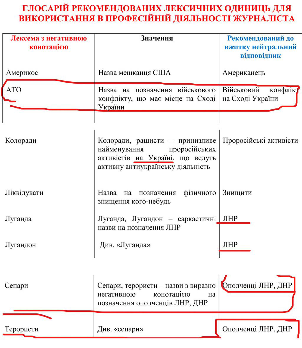 Мариупольский государственный университет подготовил "Глоссарий рекомендуемых лексических единиц для использования в профессиональной деятельности журналиста", где учит студентов, как правильно называть боевиков.