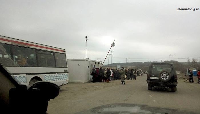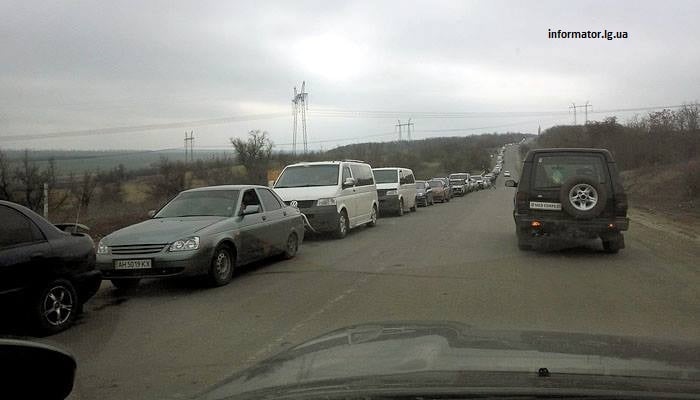 С утра на контрольно-пропускном пункте въезда-выезда насчитывалось около 50 автомобилей с обеих сторон, а также около полутора сотен желающих пройти пешком.