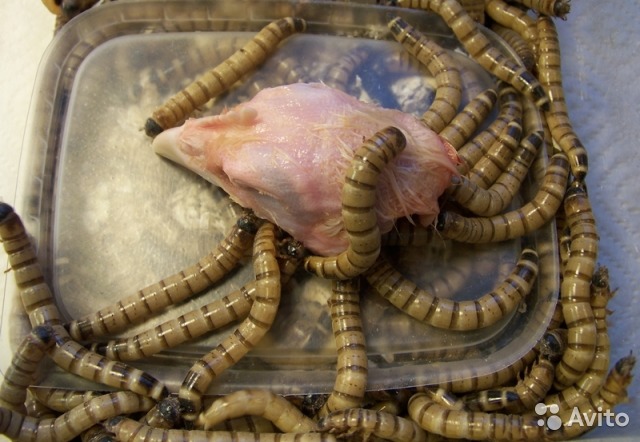 То, что находится в банке - это зофобасы — кормовые личинки. В промышленных масштабах производятся на птицефермах, где в качестве пищи для личинок используется мёртвая птица, а сам зофобас, в свою очередь, служит кормом для птицы.