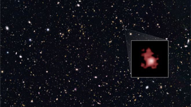 Она находится на таком расстоянии от Земли, что тусклый свет ее звезд достигает нас через 13,4 млрд световых лет.