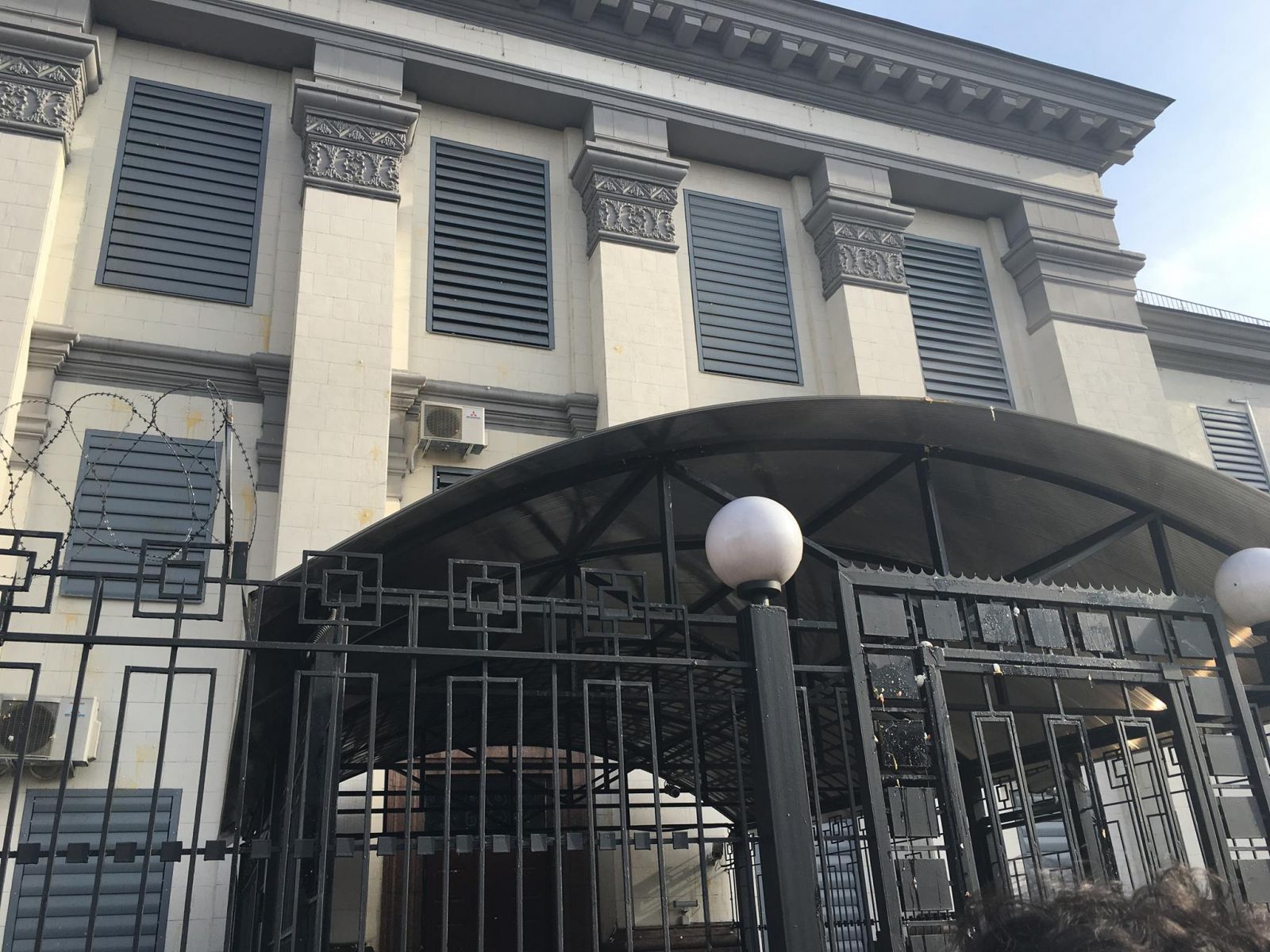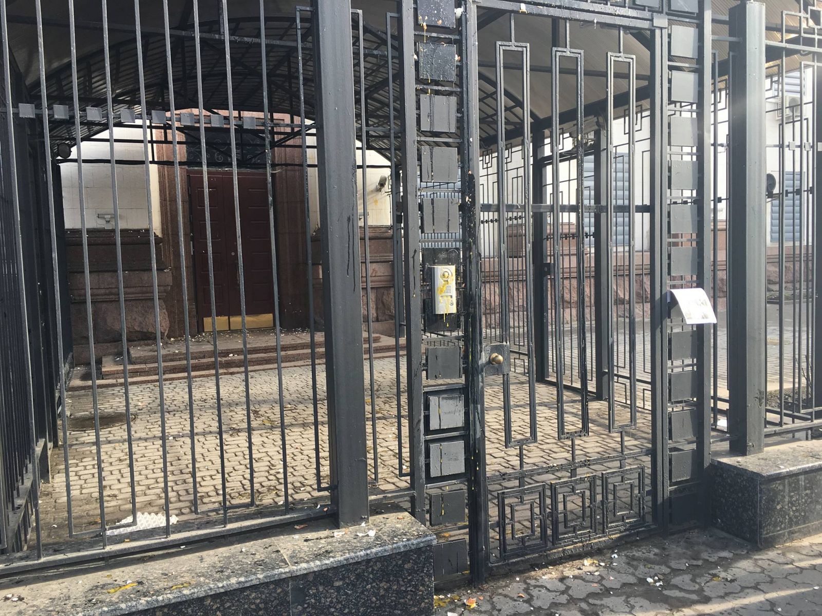 Возле посольства усиленная охрана.
