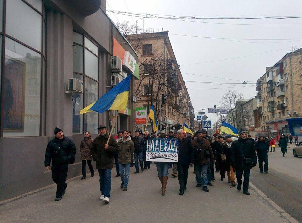 После митинга возле памятнику Т.Шевченко в поддержку Надежды Савченко участники мероприятия отправились маршем в российское консульство, возле которого провели пикет.