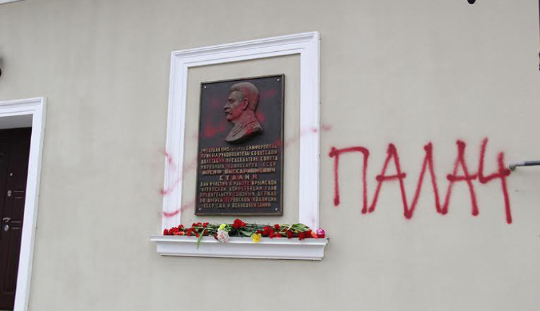 «Накануне инцидента большая группа коммунистов, члены Союза советских офицеров и представители крымской общественности почтили память И. В. Сталина, ушедшего из жизни 5 марта 1953 года, возложили цветы к мемориальной доске. Мы добьёмся поиска, задержания и наказания виновных в вандализме», — сообщили в рескоме.