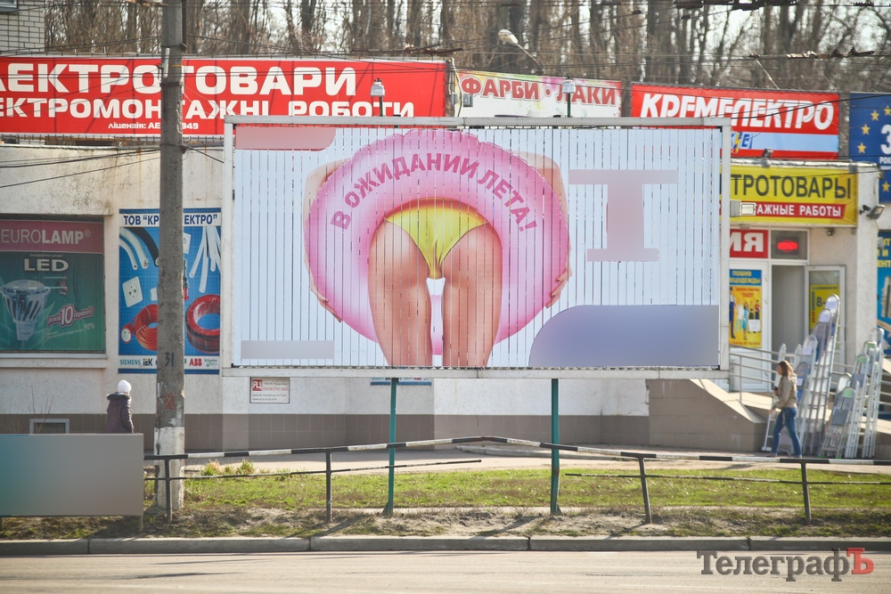 – Увидев рекламу интернет провайдера … мягко сказать, остолбенела. На весь экран в центральной части города, извините, женская задница, мало того еще и наклоненная, совсем натуральная, если вы поняли о чем идет речь, – сообщила изданию кременчужанка Светлана. – Дальше в городе я увидела грудь, правда, прикрытую руками, но разве что для загадки. Хотелось бы поднять эту тему в прессе, есть все-таки самые маленькие жители нашего города. Я звонила в … (провайдеру – ред.), там сказали, что это маркетинговый ход, и даже если это будет голое тело, то их это не волнует! Думаю, если все-таки обращать на это внимание, то хоть какая-то цензура и будет!