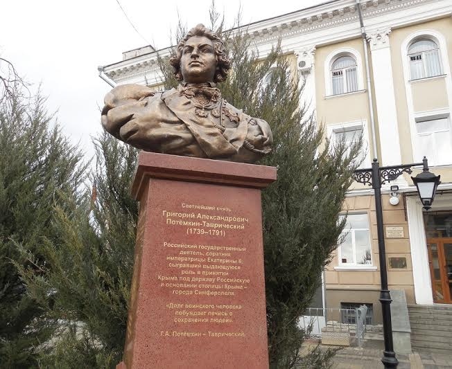 В Симферополе возле здания администрации города установили бюст Григория Потемкина.