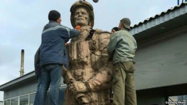 Прототипом памятника стал реальный минометчик- "киборг" Евгений Абросимов, который участвовал в защите Донецкого аэропорта.