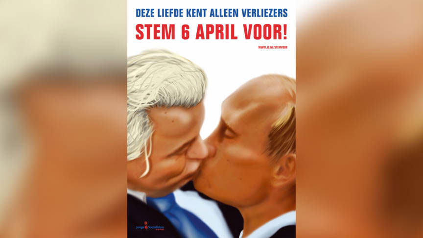 На станциях голландской железной дороги не позволили разместить плакат, подготовленный партией Jonge Socialisten ("Молодые социалисты") с изображением поцелуя крайнего правого нидерландского политика Герта Вилдерса с Путиным. Плакат должен был убедить избирателей поддержать ассоциацию Украина-ЕС.