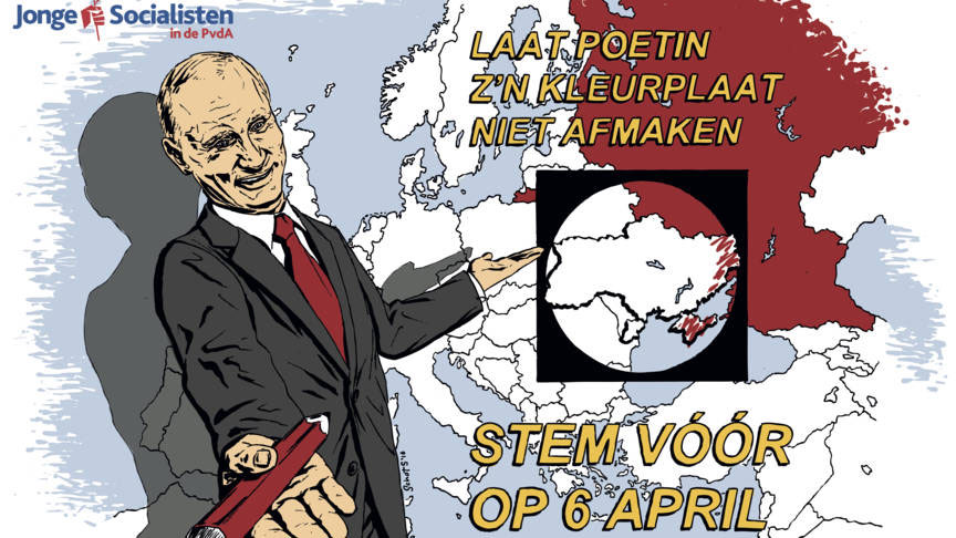 Лидер молодых социалистов Барт ван Бруггер возмущен таким решением. Партия подготовила третий вариант, где Путин изображен с красным карандашом в руках, разрисовывает карту Европы, в частности красным обозначены территория Крыма и часть восточной Украины. На плакатах будет надпись: "Не дай Путину завершить его раскраску. Голосуй "за" 6 апреля". Этот вариант плаката в конце месяца появится на остановках.