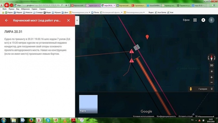 19 марта сухогруз «Лира» столкнулся с опорой строящегося Керченского моста около 20:30. Об этом сообщает Главное со ссылкой на Аргументы недели - Крым.