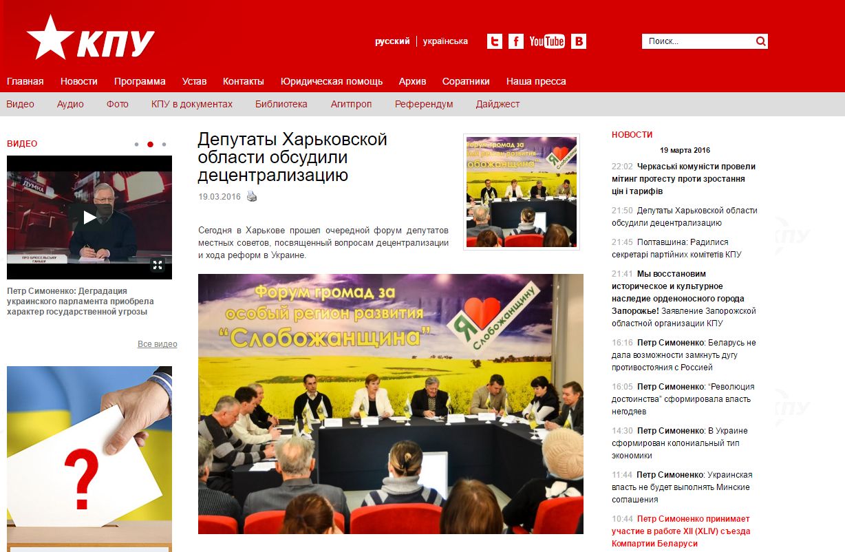 Как говорится сообщении, "в процессе обсуждения основных вопросов представители местных громад Харьковщины - депутаты местных советов - обменялись мнениями о ходе реформ, а также поделились с присутствующими на форуме представителями общественности и СМИ своим видением промежуточных результатов децентрализации". Однако на деле, как рассказали NR информированные источники, мероприятие, которое проходило в офисе КПУ, собрало в основном коммунистов и сочувствующих.